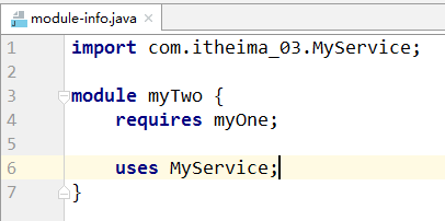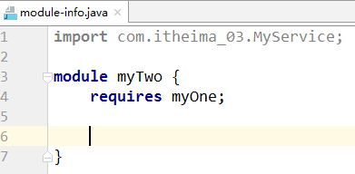 - 在myTwo模块中修改module-info.java文件,添加以下内容