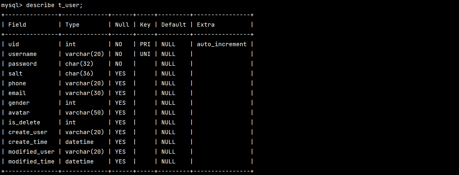 首先我们创建一个entity的软件包,这里相当于是和model功能一致的数据库,只不过用于存放我们的实体类,与数据库中的属性值基本保持一致,实现set和get的方法。我们先通过sql语句创建一个数据库,具体的字段如下