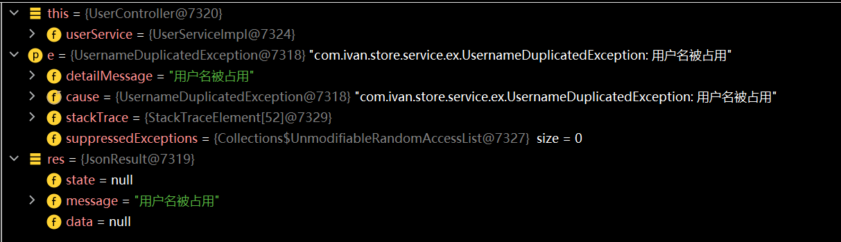 因此,传递一个 Exception 对象 e 给构造函数看起来有些奇怪,但实际上,e 可能会被用于初始化 JsonResult 的其他字段(如 message 或 code),而不是 data 字段。