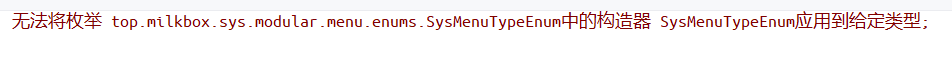 [ERROR] /E:/my_project_move/12_milkbox2/milkbox2-api/milkbox-service/service-sys/src/main/java/top/milkbox/sys/modular/menu/enums/SysMenuTypeEnum.java:[16,9] 无法将枚举 top.milkbox.sys.modular.menu.enums.SysMenuTypeEnum中的构造器 SysMenuTypeEnum应用到给定类型;