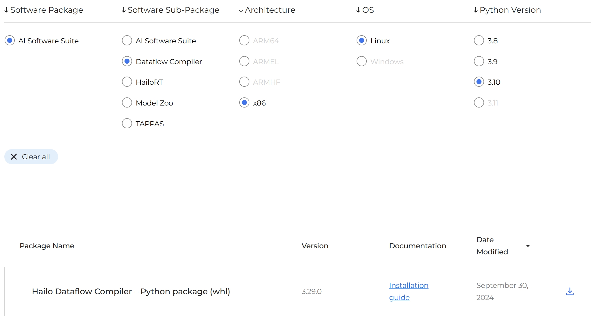 - Dataflow Compiler v3.29.0:https://hailo.ai/developer-zone/documentation/dataflow-compiler-v3-29-0