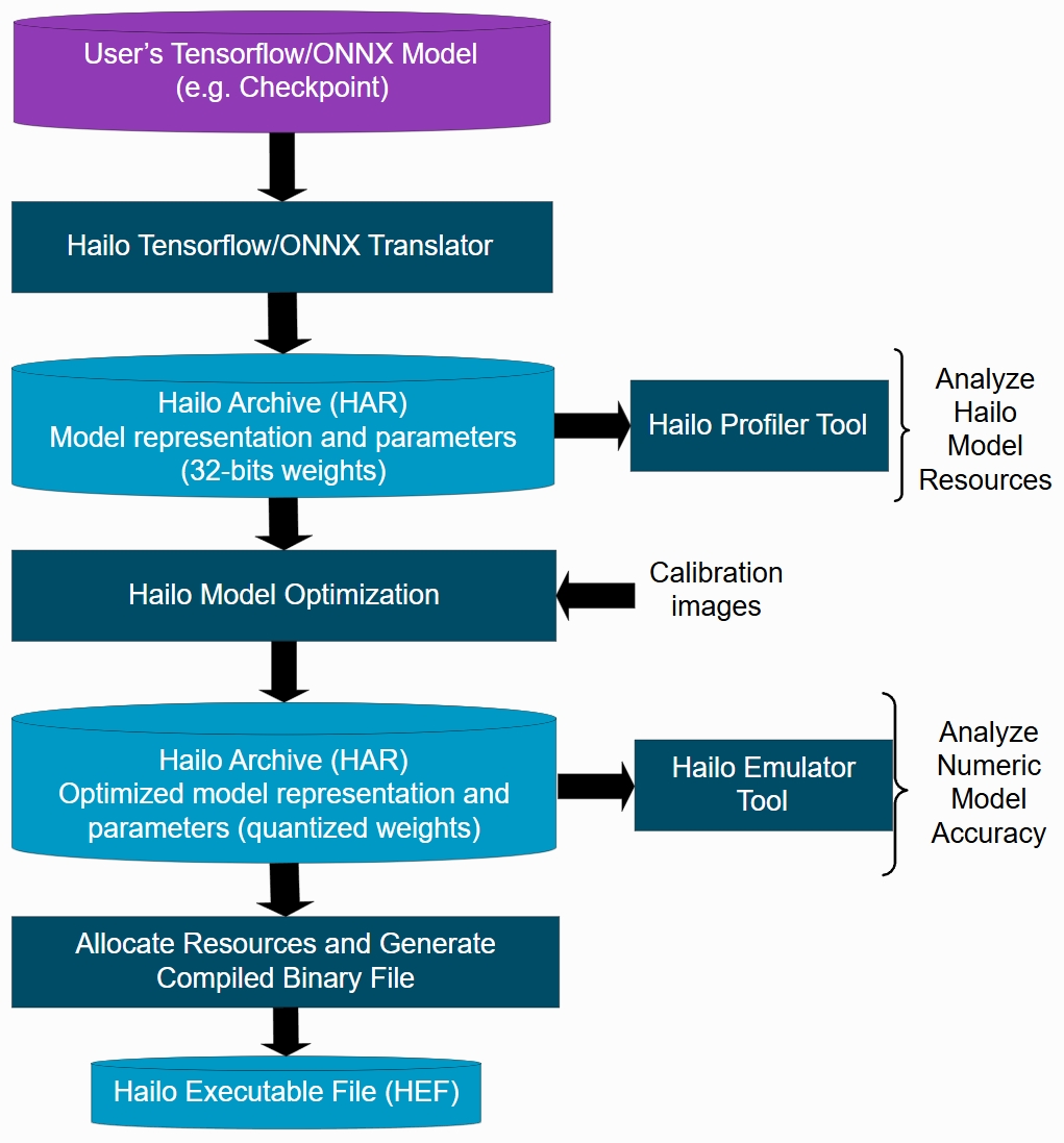 - 将 Tensorflow 或 ONNX 模型转换成 Hailo Archive 模型(