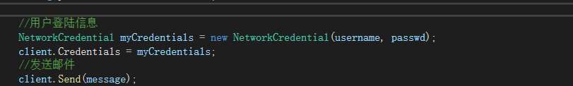 接下来使用账号和授权码作为参数创建一个NetworkCredential对象,并赋值给client对象的Credentials属性,如图2-5所示;