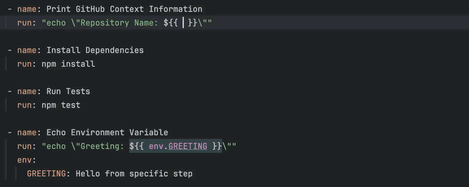 现在可以为各种 GitHub Action上下文引入了广泛的自动完成支持,包括github.*、env.*、steps.*和inputs.*。
