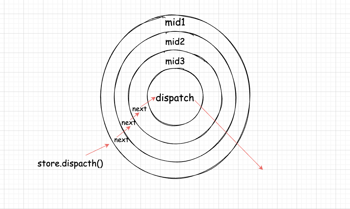 //dispatch=f1(f2(f3(store.dispatch))),把所有 的middleware串联起来