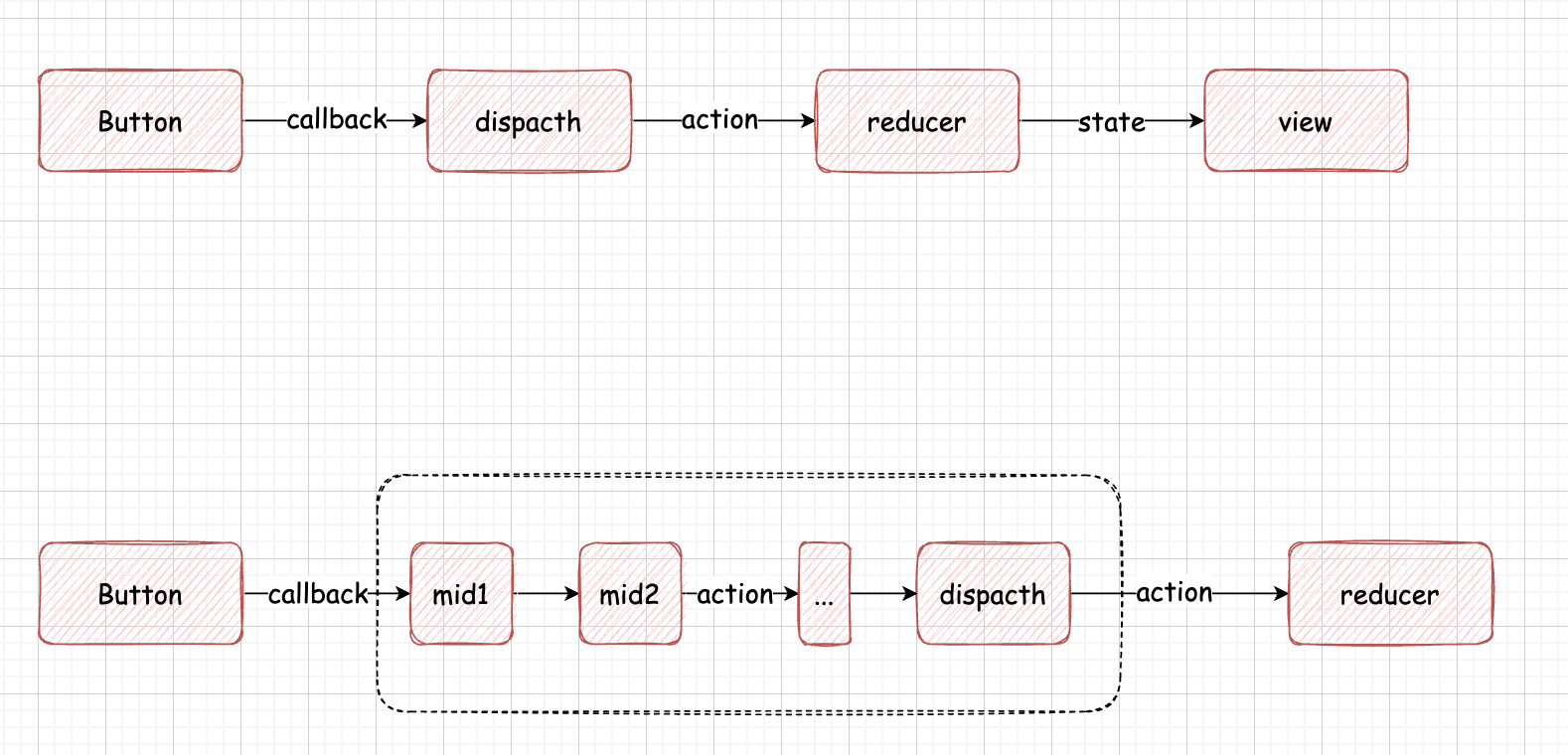 middleware 提供分类处理 action 的机会,在 middleware 中可以检查每一个 action ,挑选出特定类型的 action 做对应操作