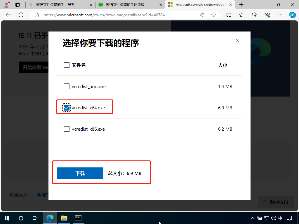 选择对应版本的依赖安装即可,本例的 Windows 是 64 位,x86架构,因此选择x64的文件下载安装。