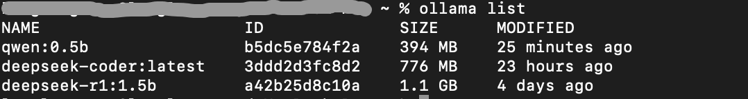 可以查看当前安装的本地大模型,刚安装ollama时执行这条命令应该是空的。