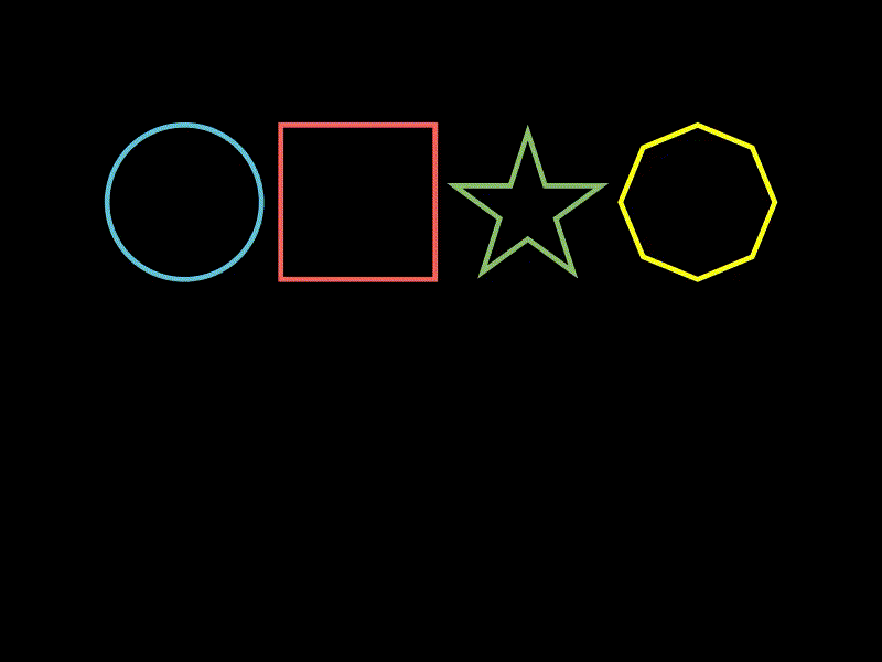 这个示例中,我们创建了一个包含圆形,正方形,星形和正八边形的 VGroup