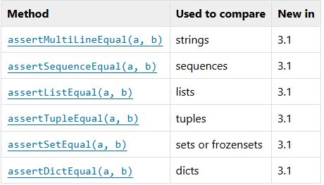The following table lists the most commonly used methods (see the tables below for more assert methods):