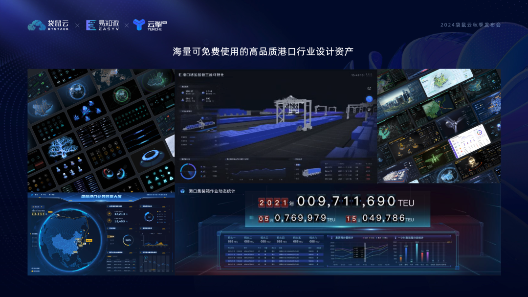 袋鼠云凭借在数字孪生港口建设领域的丰富经验,积累了大量专为港口行业设计资产。我们提供这些与港口行业相关的模型和UI素材,希望为客户提供实用的参考并支持直接使用,以降低从零开始的设计和构建成本,提高项目建设的落地效率,进而加速港口数智化项目的实施与创新。