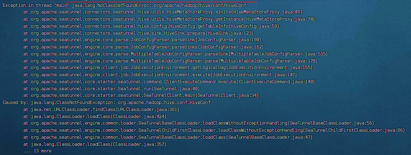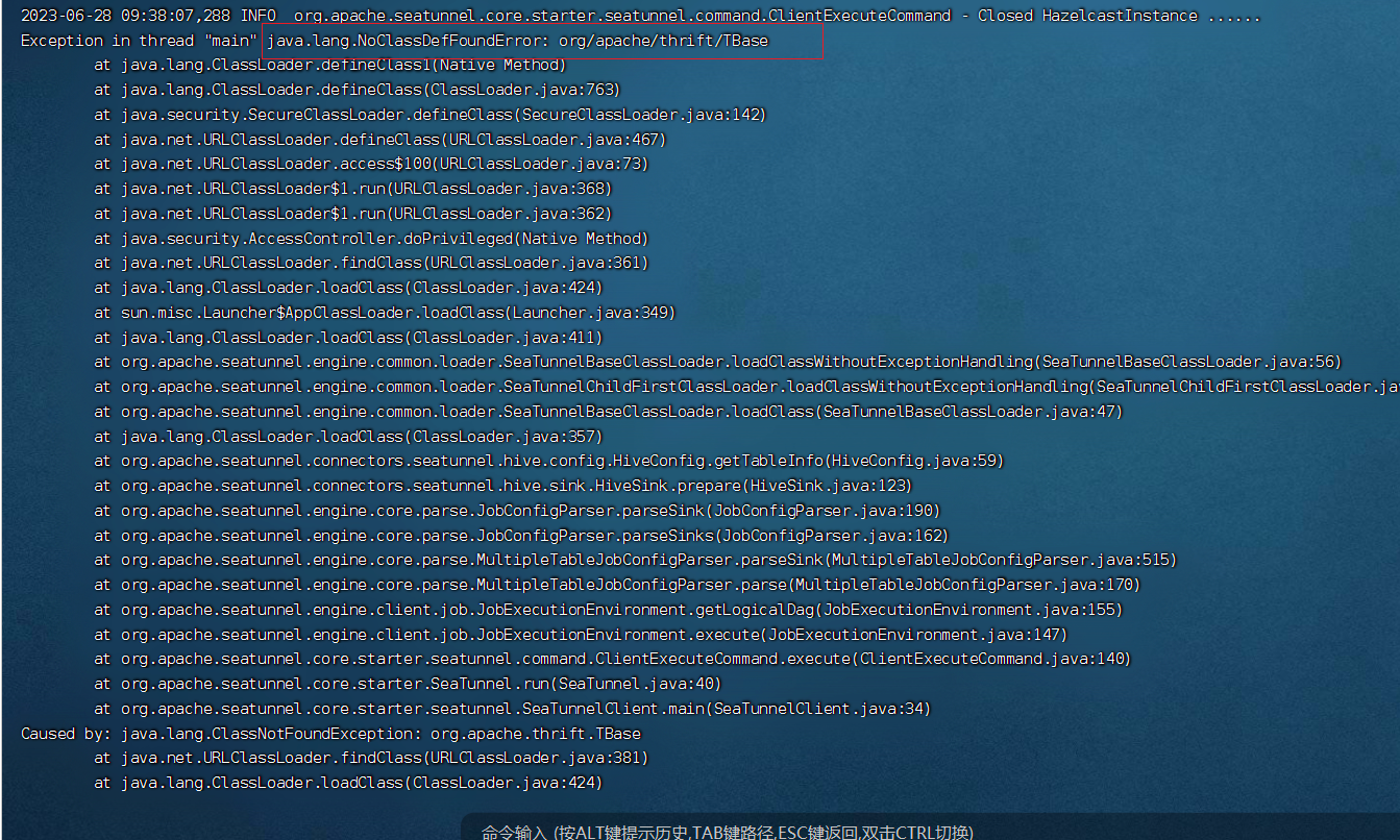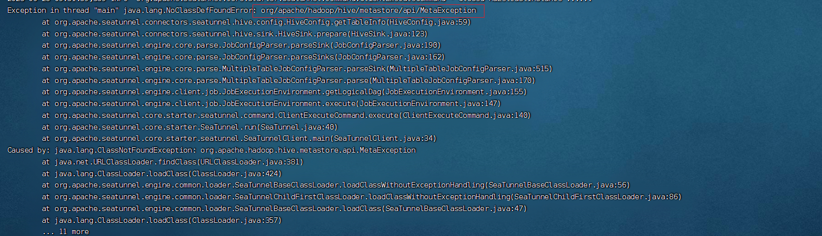 是缺少对应的包,去Hive里面的lib将包复制到SeaTunnel的包下面即可