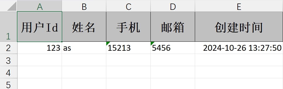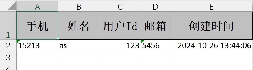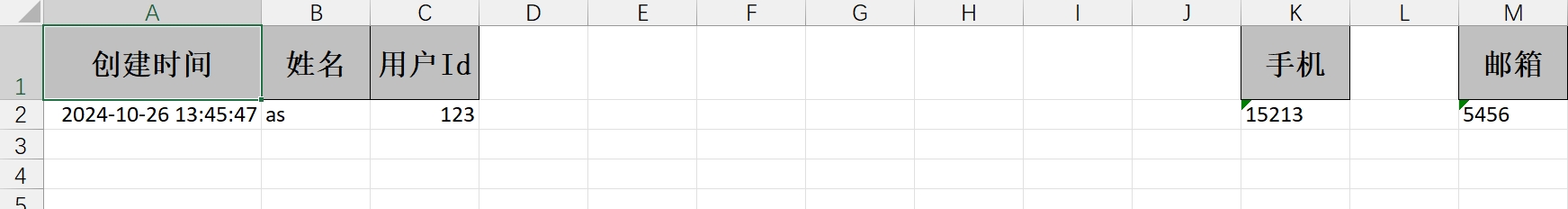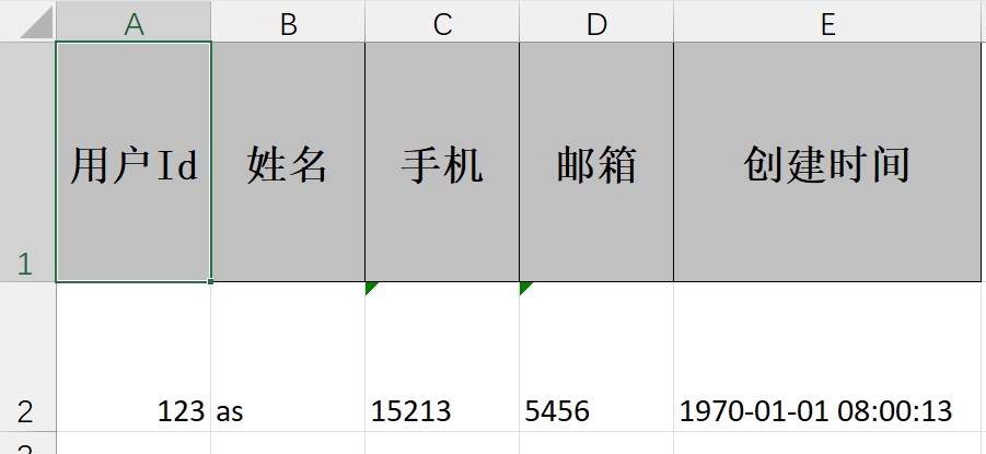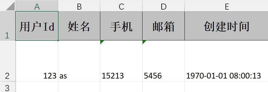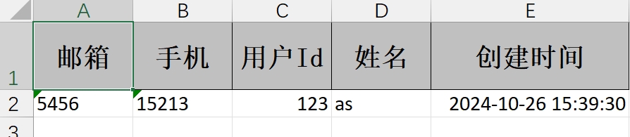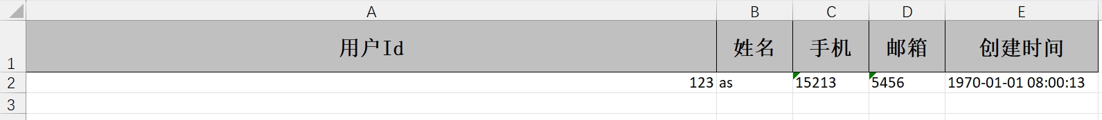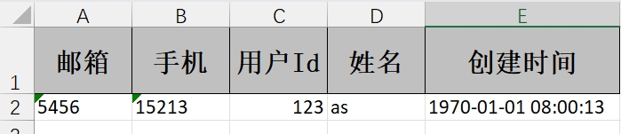在读写 EXCEL 时,有时候需要我们进行数据类型转换,例如我们这里的创建时间,在实体对象中是 Long 类型,但是这样直接导出到 Excel 中不太直观。我们需要转换成 yyyy-MM-dd HH:mm:ss 格式,此时我们就可以用到转换器。