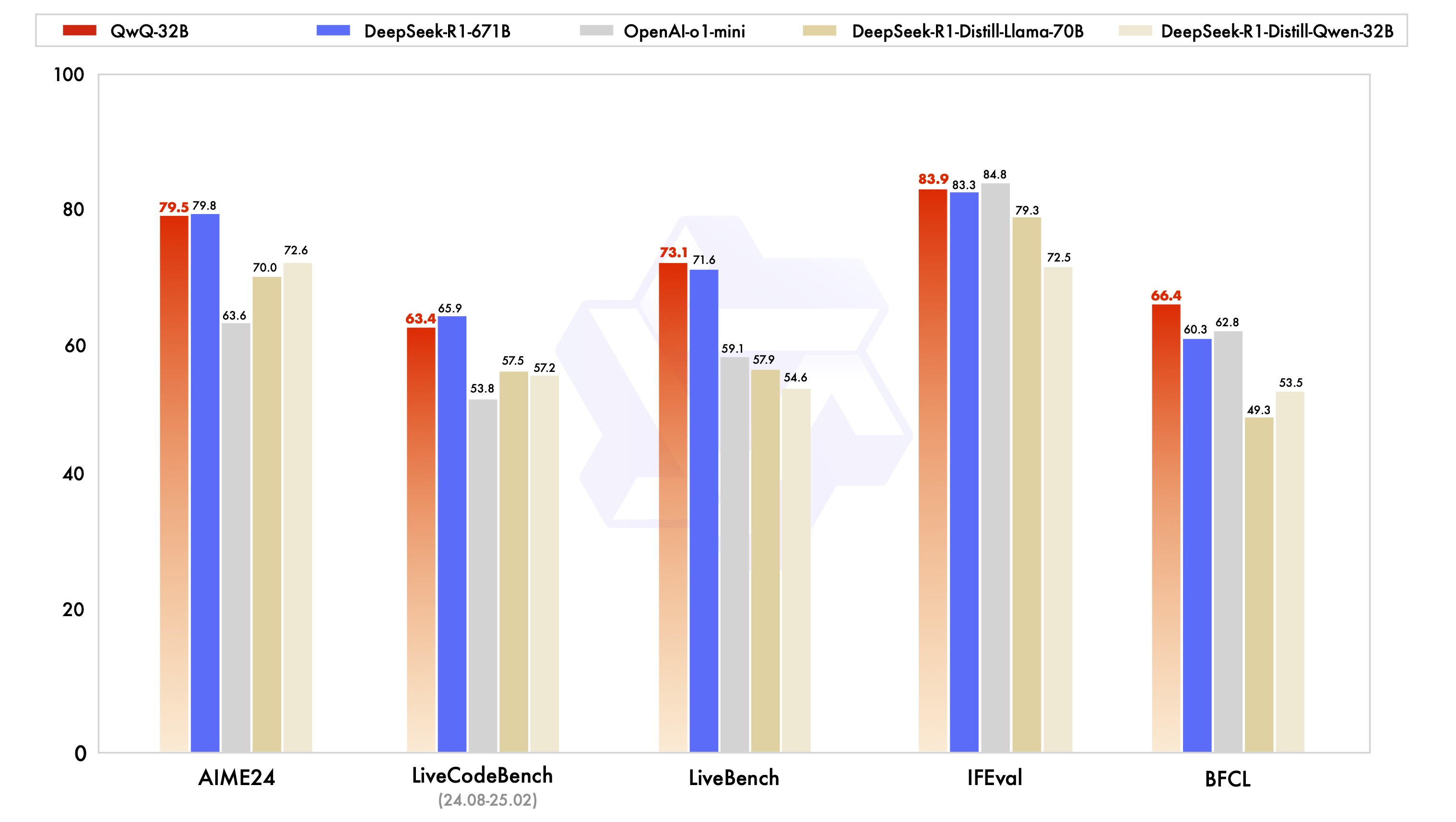 QwQ-32B 的独特之处不仅在于其参数规模和效果表现,还集成了与 Agent 相关的能力。这使得模型在使用工具时能够进行批判性思考,并依据环境反馈灵活调整推理过程,极大提升了模型的适应性与智能性。