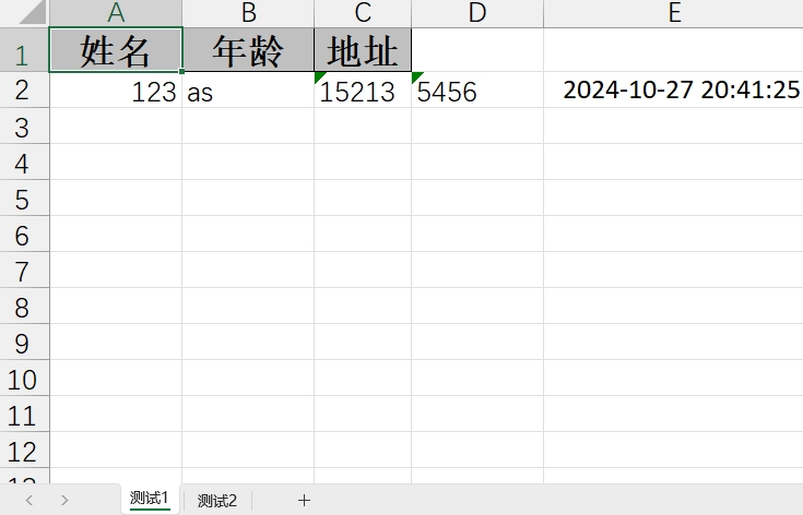 WriteSheet writeSheet2 = EasyExcel.writerSheet(1, "测试2").build();