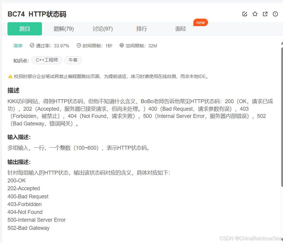 HTTP状态码_牛客题霸_牛客网