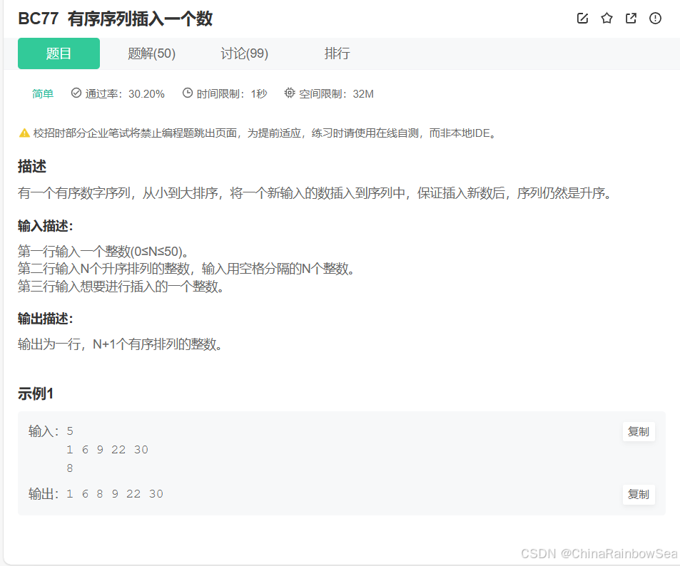 有序序列插入一个数_牛客题霸_牛客网