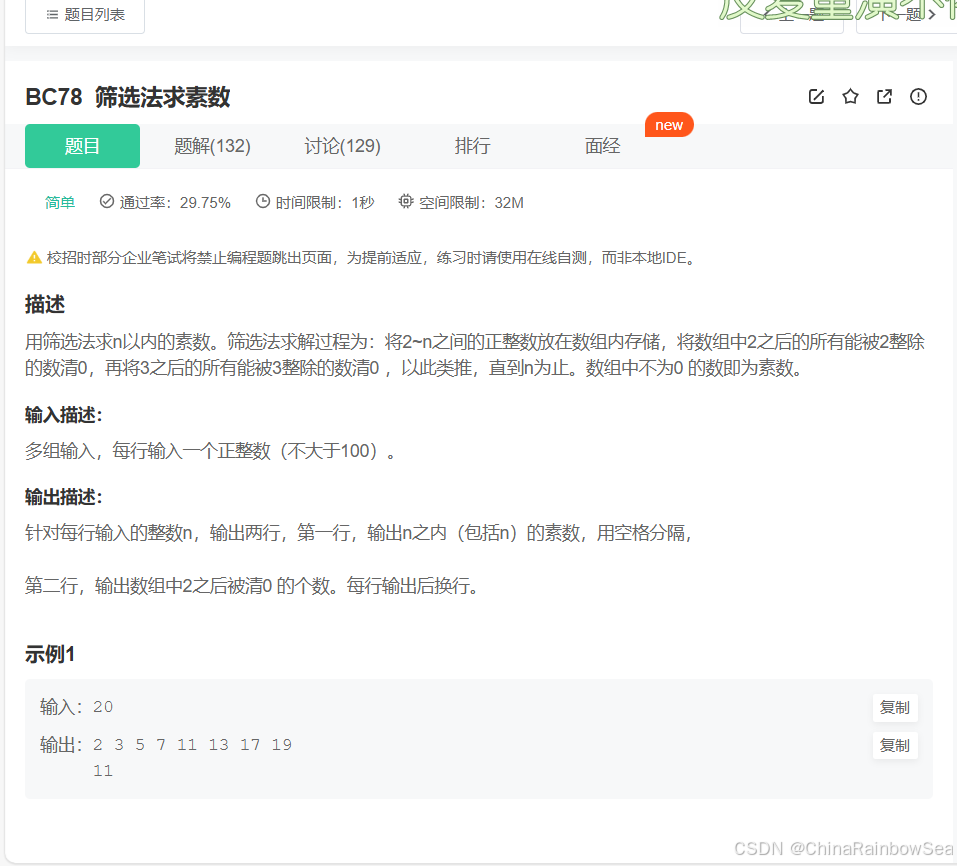 筛选法求素数_牛客题霸_牛客网