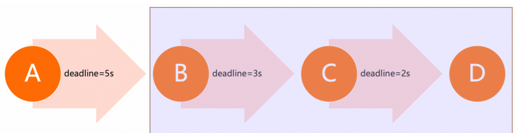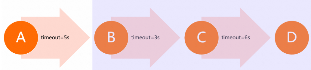 A 调用 B 设置了超时时间 5s,因此 B -> C -> D 总计耗时不应该超过 5s,否则 A 就会收到超时异常