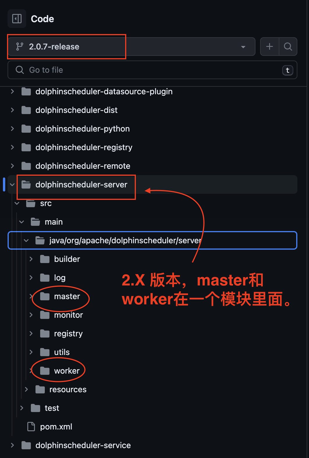 ① 2.X 版本和 3.X 版本一样,在 dolphinscheduler-api