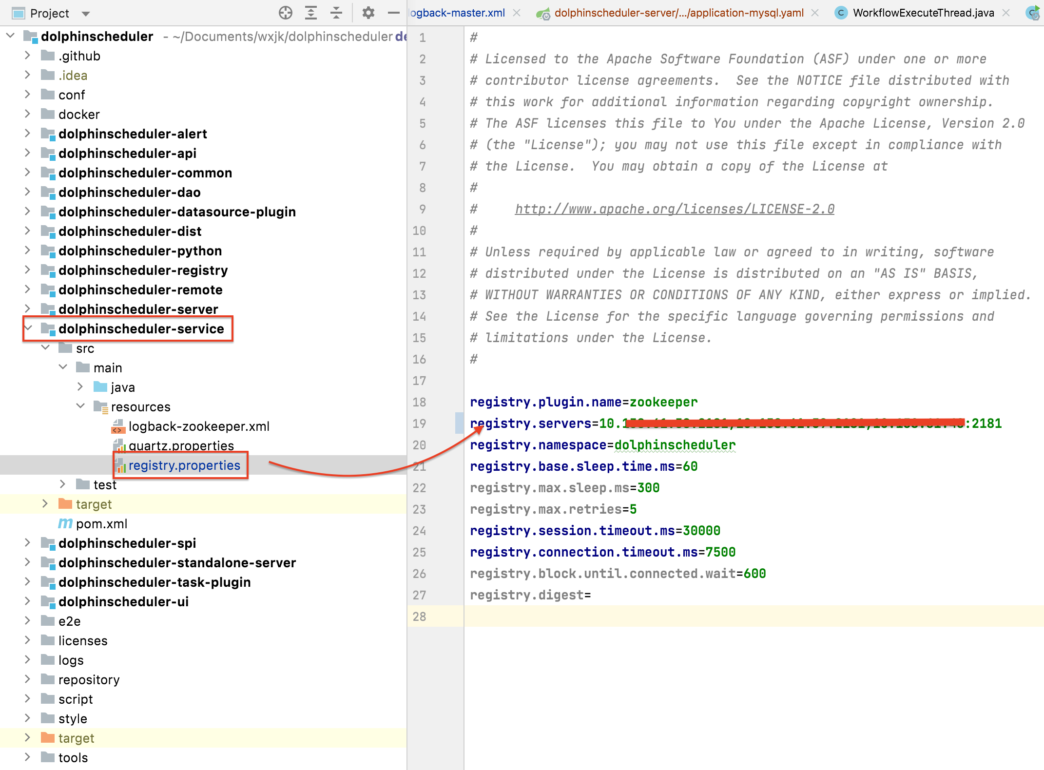 如果你使用的是本地的 ZK,配置默认就是 127.0.0.1:2181 ,这一步可以跳过,不需要修改。