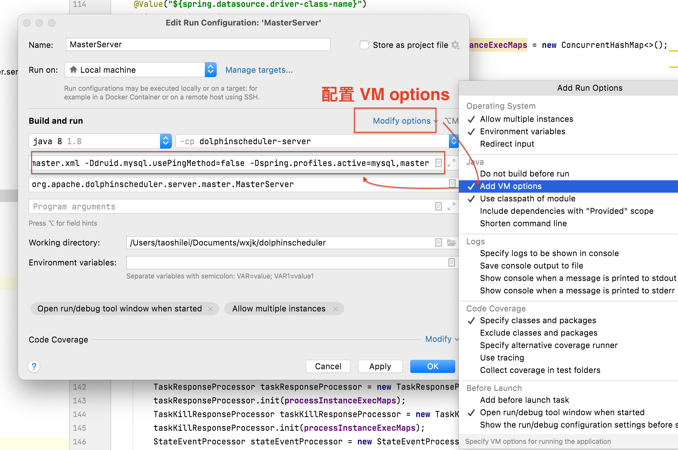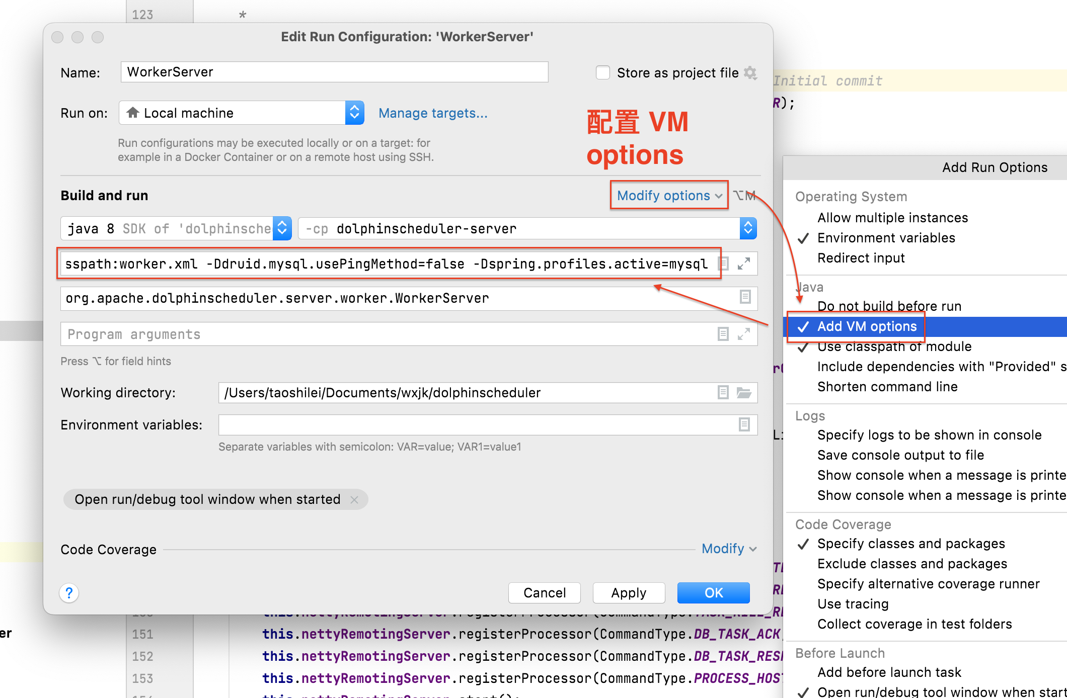 配置VM Options:–Dlogging.config=classpath:logback-worker.xml-Dspring.profiles.active=mysql,worker