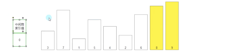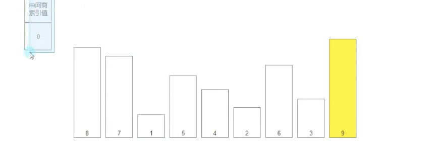 - 中间商与数组的值比较,从索引0开始向后依次比较,每次比较后更新中间商的索引为较大值(或较小值)的索引,找到极值(MAX/min),把极值与目标位置(arr.Length-n-1)互换位置(如果是升序排列,就把MAX放在末尾)