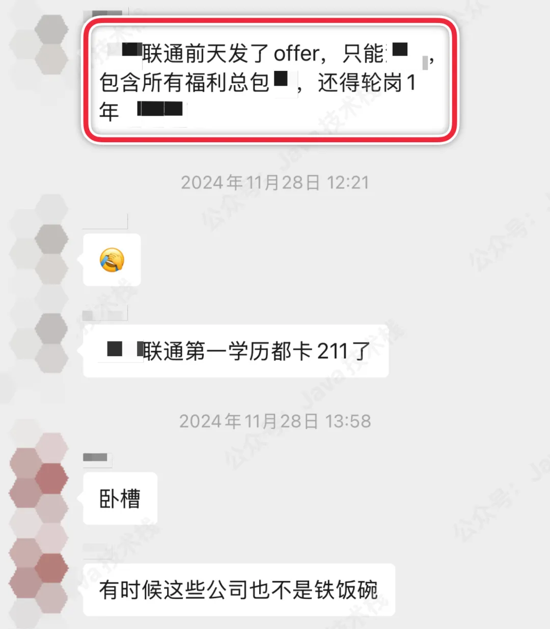 随后不久,联通的offer接踵而至,小鹏同学庆幸地说:“再晚一年,联通第一学历就卡211了。”