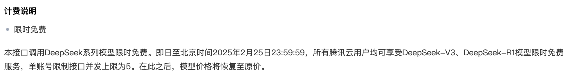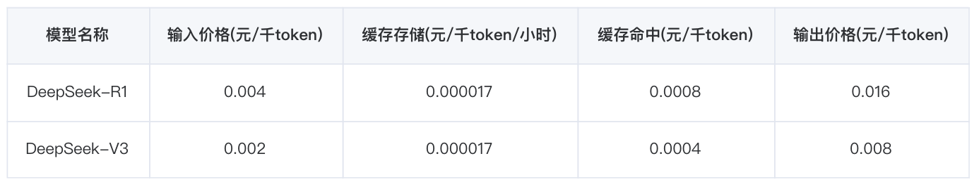 目前该产品的DeepSeek系列模型(包含671B参数的 deepseek-v3 和 deepseek-r1)正在免费限时提供服务: