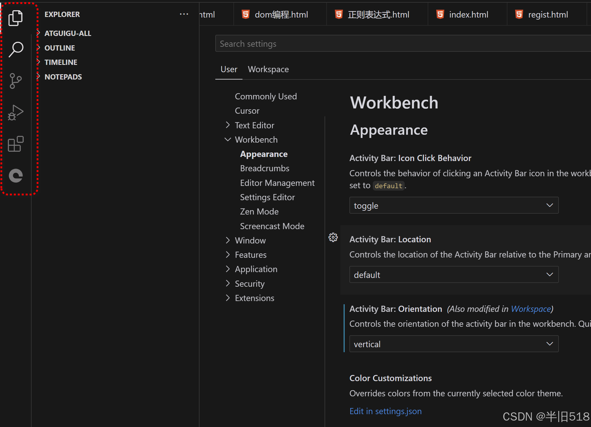 更改下菜单栏位置。ctrl+shift+P,输入settings。找到VScode Settings。