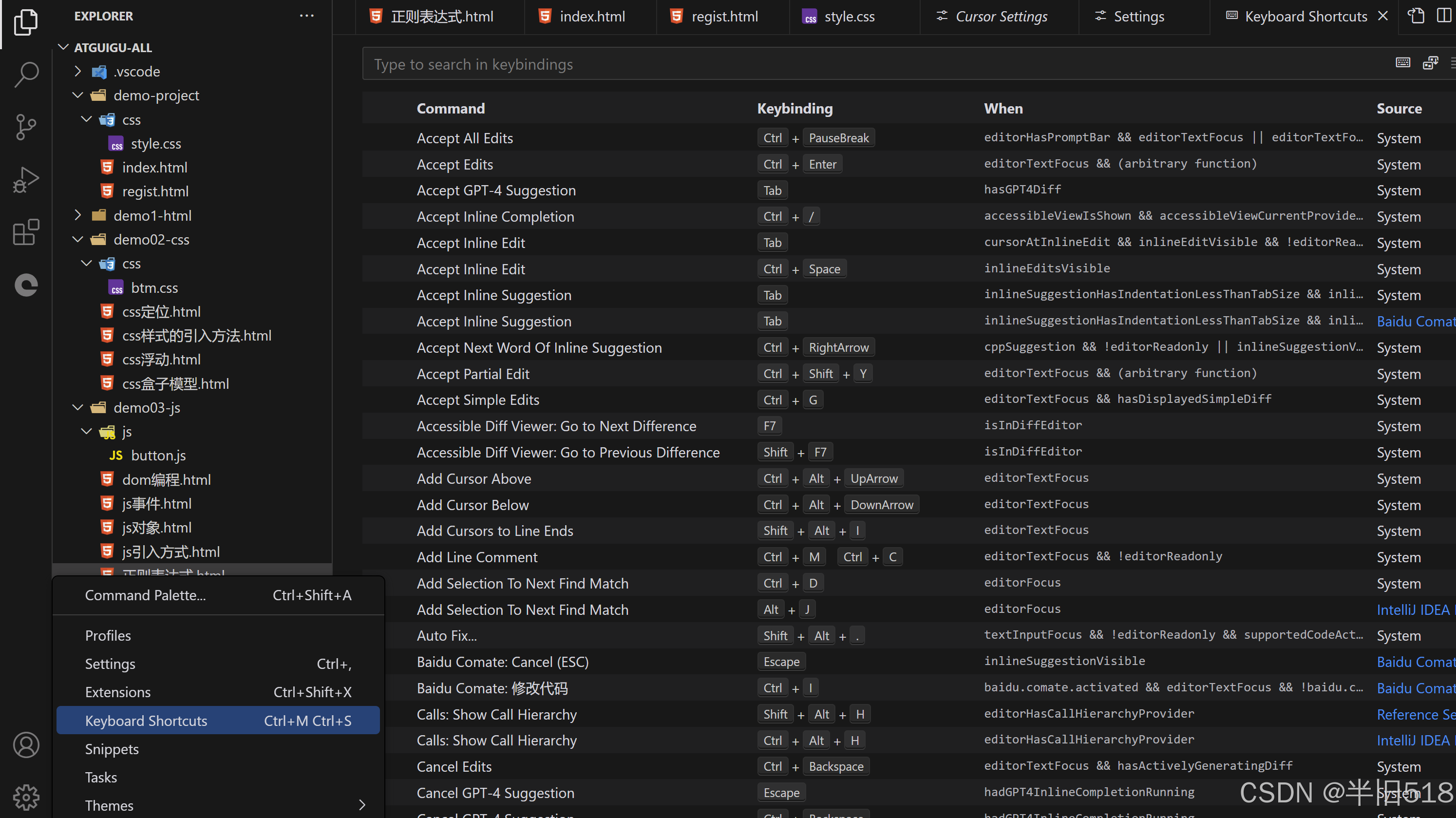 cursor的快捷键可能与电脑其它快捷键冲突,这一节我们来重点解决下这个问题。点左下角齿轮就好。