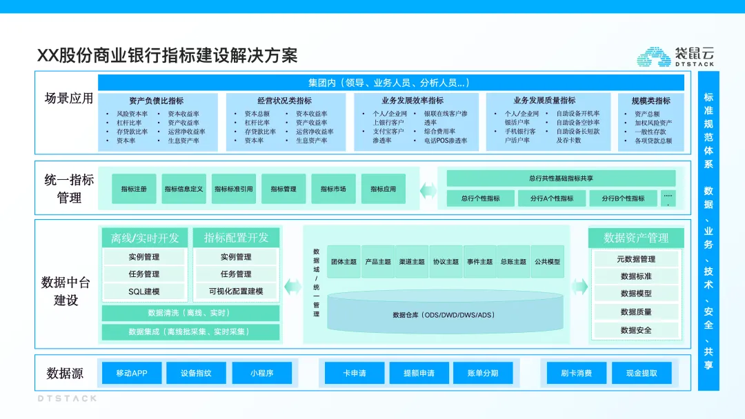 指标平台建设:建立单一、集中化的指标管理平台,实现对全行指标的统一管控,确保数据来源和管理的一致性。