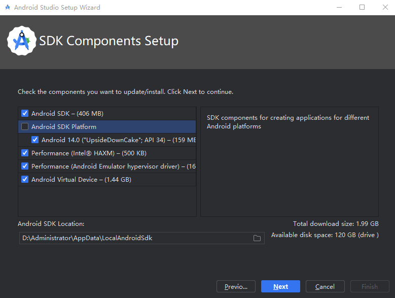SDK Manager 还可以在 Android Studio 的”Preferences”菜单中找到。具体路径是Appearance & Behavior → System Settings → Android SDK。