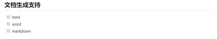 - 支持生成 HTML、Word、MarkDown 三种格式的文档。