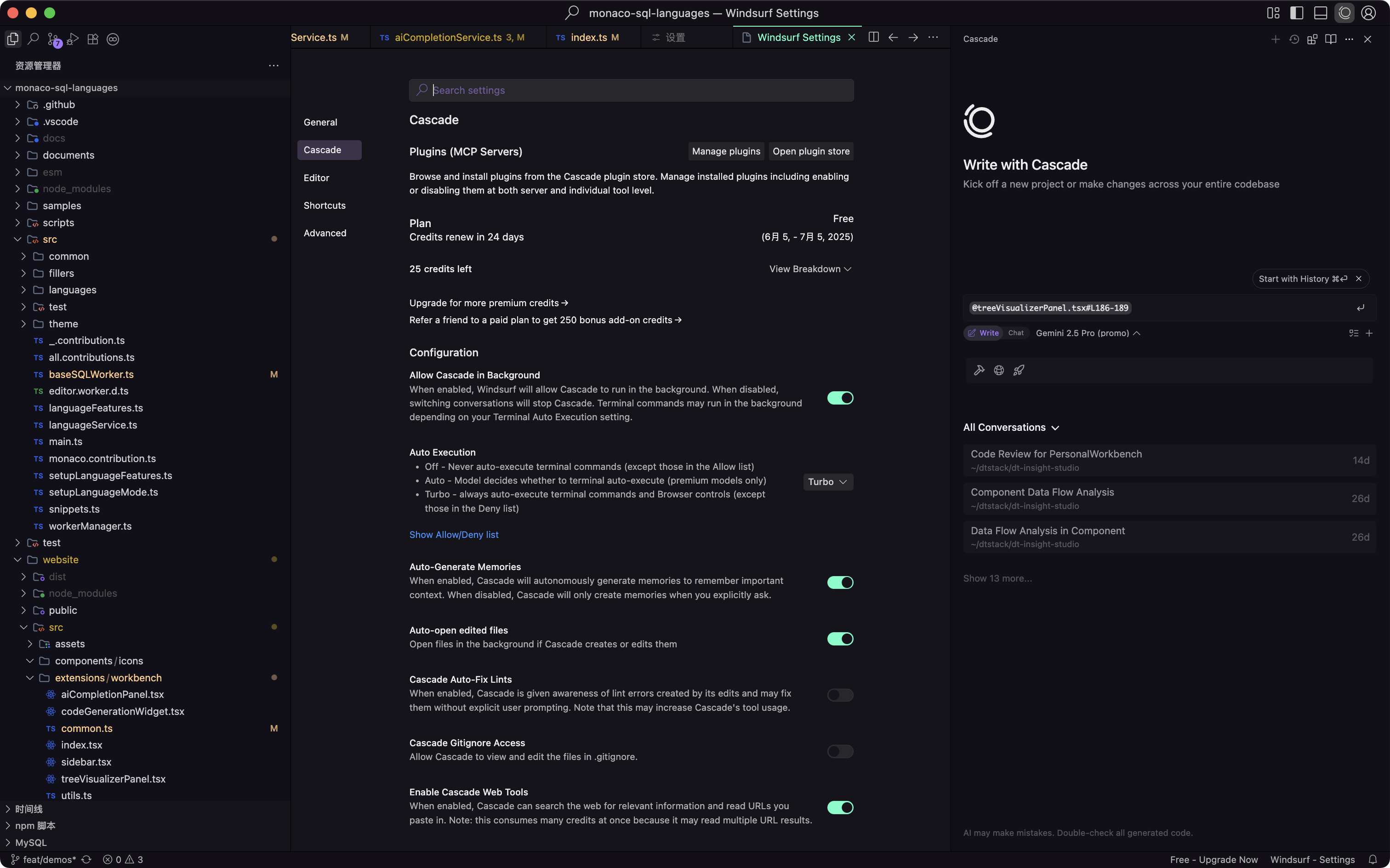 @Past Chats引用其他对话的结果 - 智能补全(CursorTab 与 WindsurfTab)可以开启 Fast 模式,更快更主动。