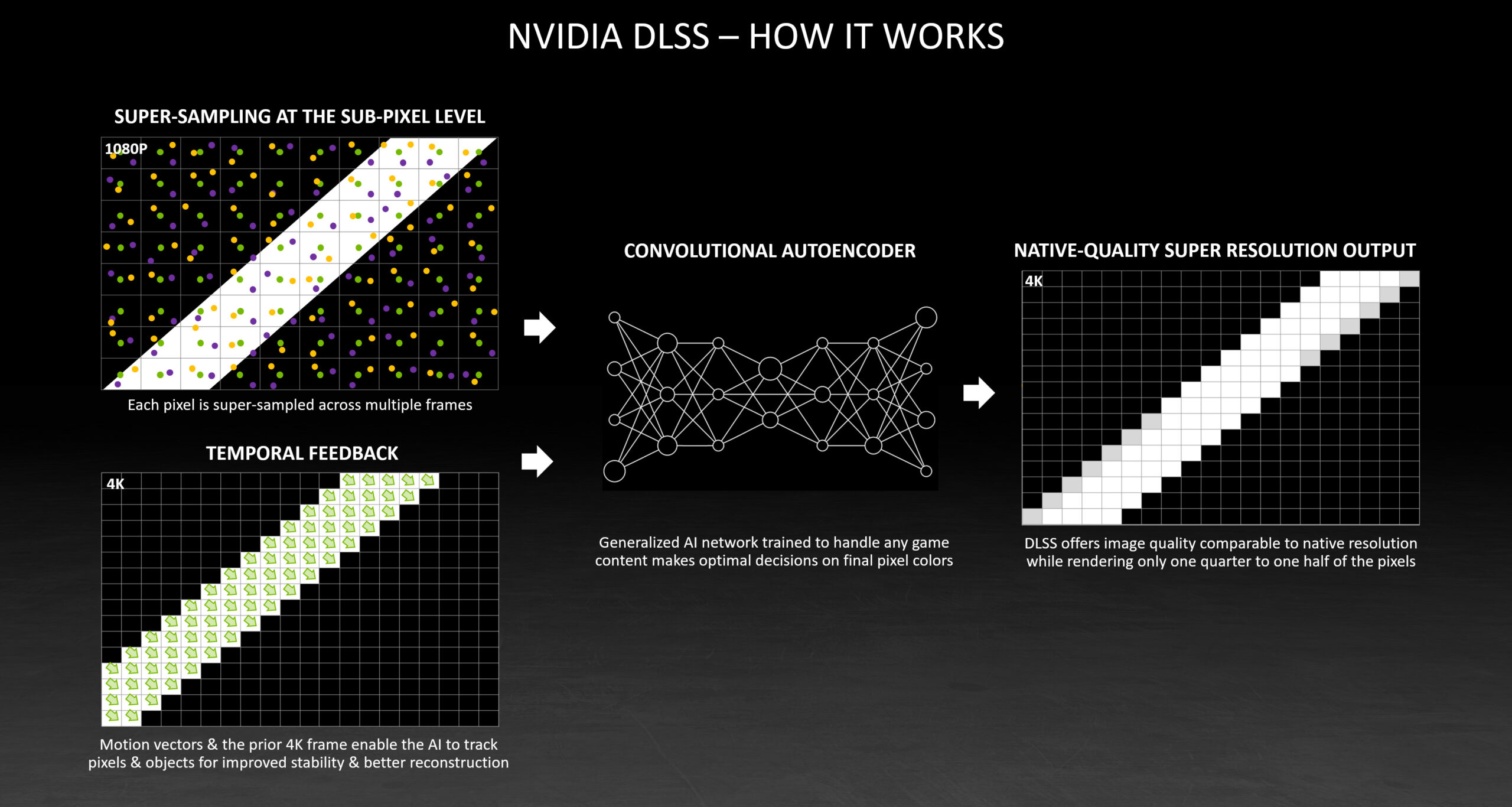 - 从18年不断发展至今的 DLSS 或 FSR 技术,使画面以低分辨率渲染,再通过 AI 超采样至高分辨率画质,实现提高帧率性能同时尽可能的保留原有画质。