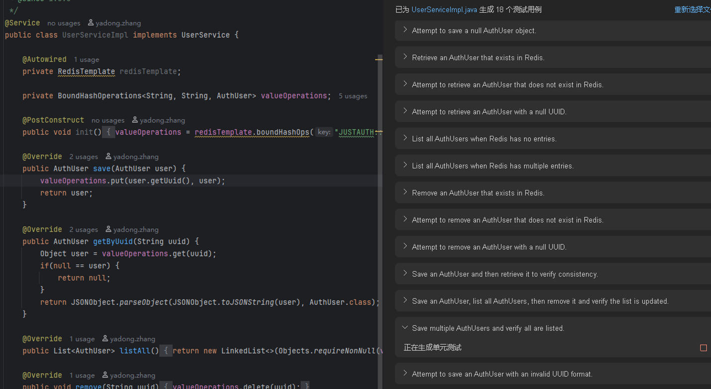 以上生成代码存在问题, 还是不及Diffblue工具。