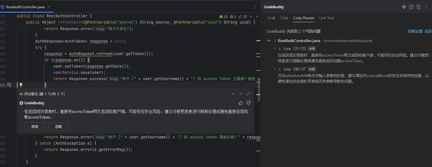 单个文件code review效果一般,如下代码hardcode没有反馈出来