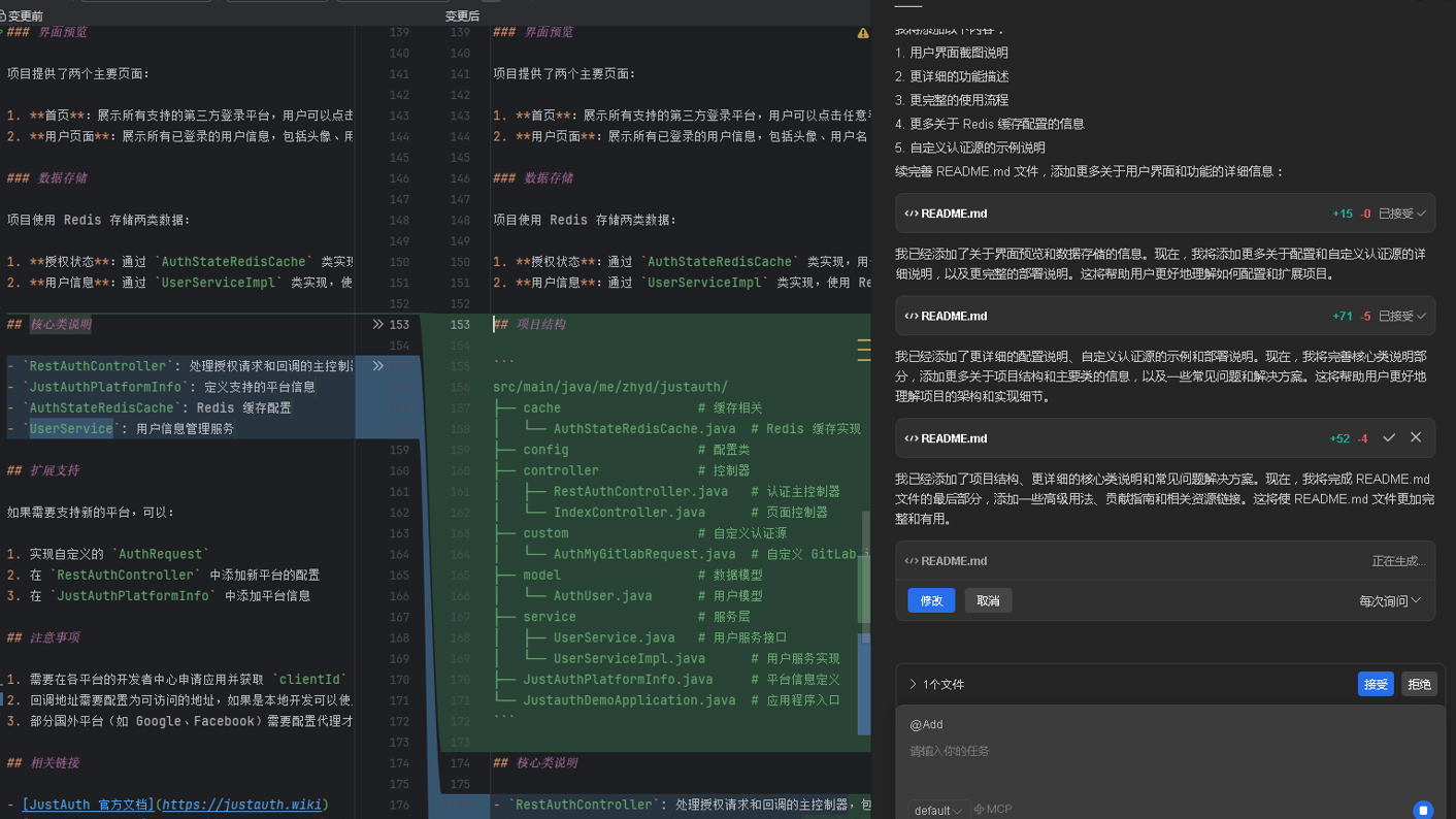 – `README.md`提供了安装、快速开始、配置和示例的说明。