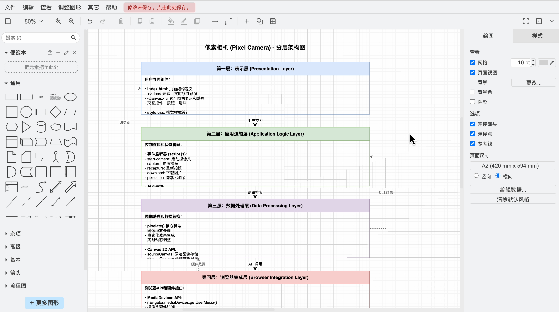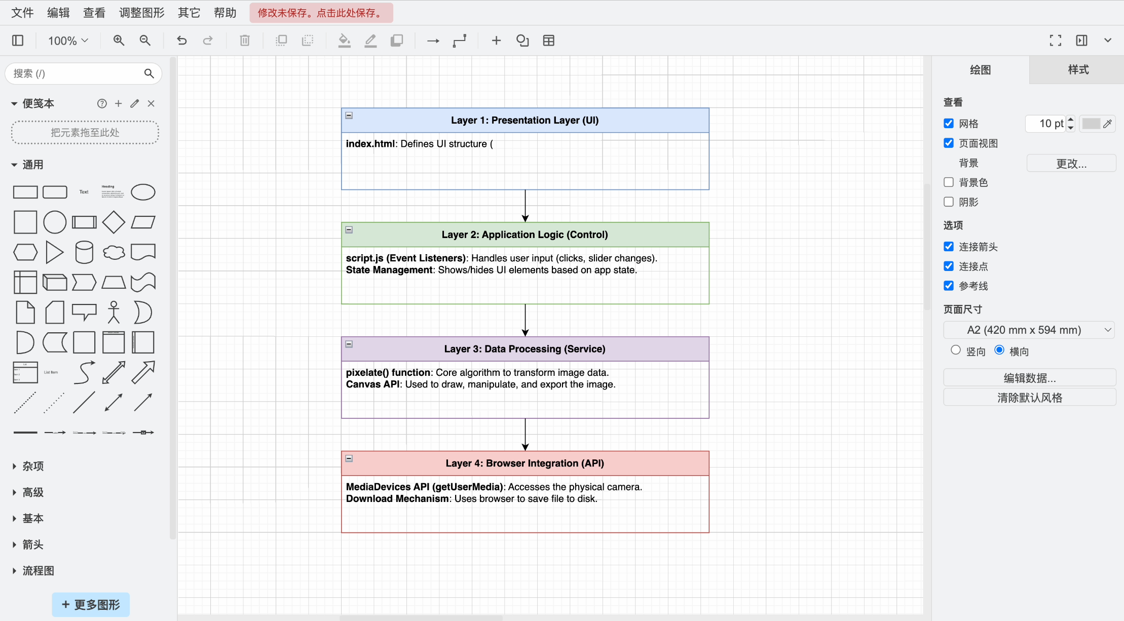 来,我们把 AI 生成的架构图代码文件拖到 draw.io 中打开。