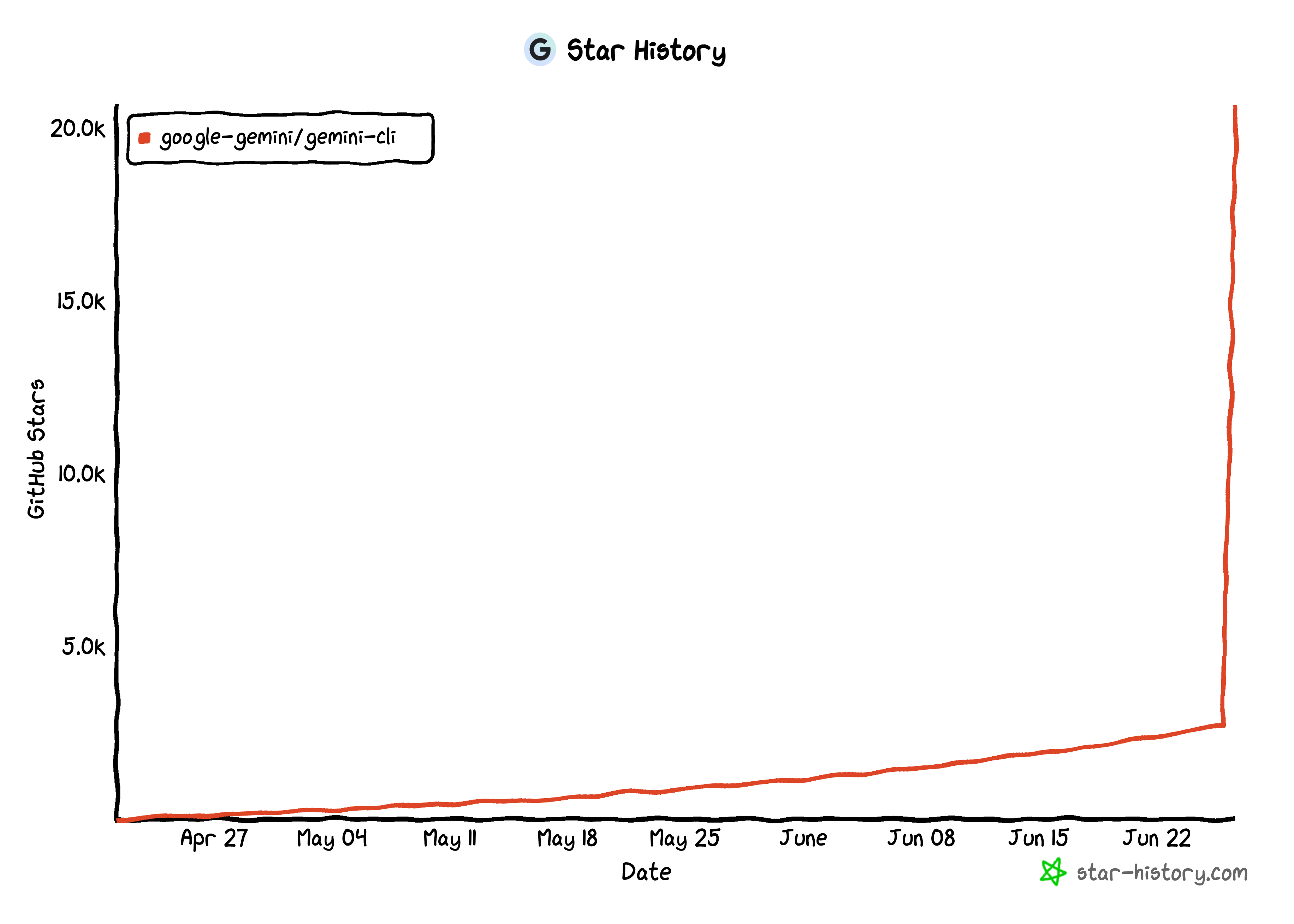 刚刚谷歌发布了一个很有意思的新产品 Gemini CLI,直接把 AI 塞进了终端里。