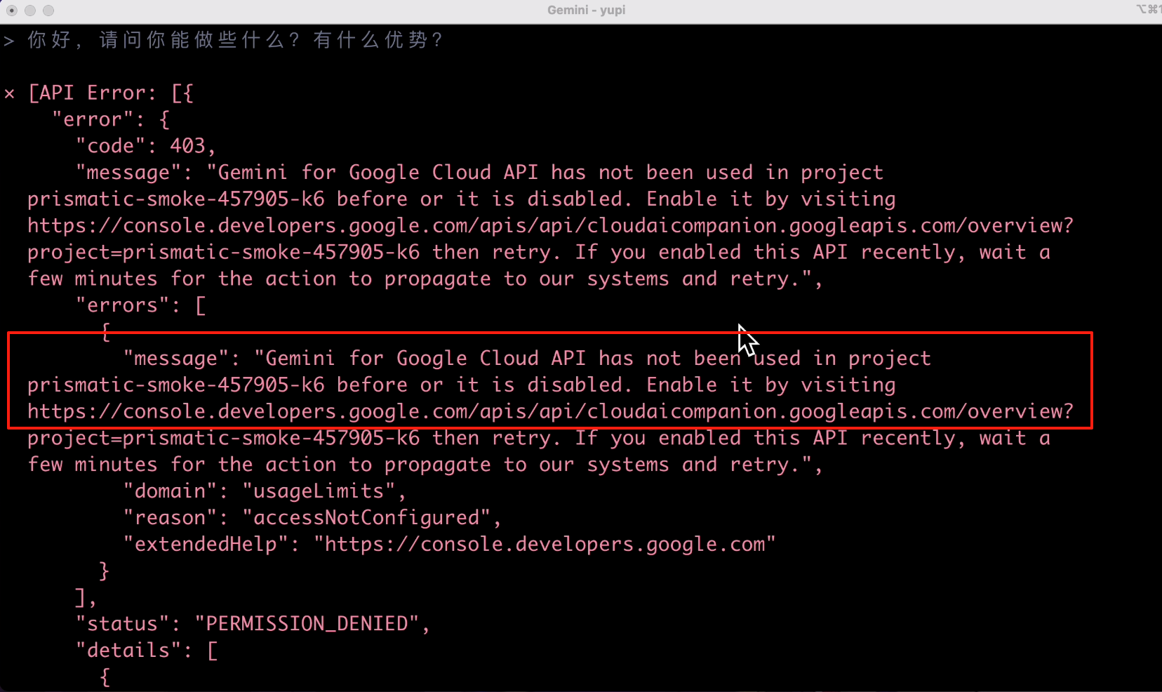直接访问错误信息中的网址,就能去控制台开启 API 权限了,开一下开一下: