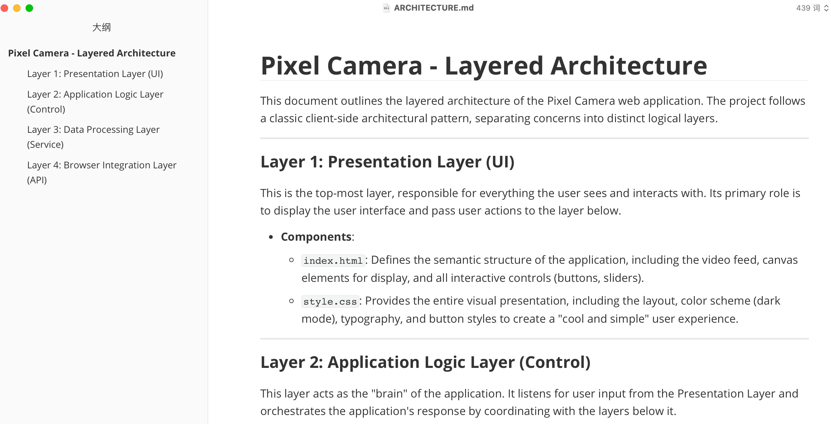好,鉴于刚刚的任务完成得还可以,我们加大难度。让 AI 生成一个项目的分层架构图: