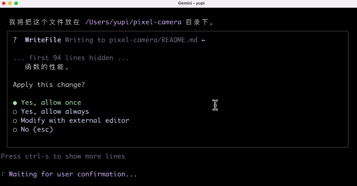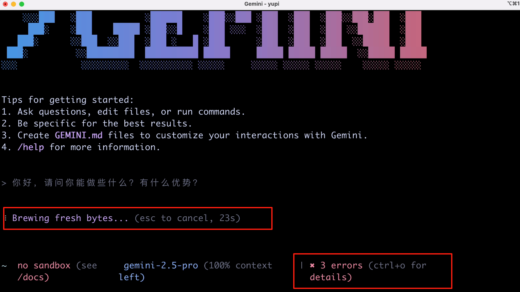 像我平时生活中会用豆包或者元宝,非常方便,有问题直接语音就能输入;专门编程做项目的时候会用 Cursor + Claude 的组合。那你说 Gemini CLI 的应用场景在哪里?我总不能平时有问题的时候,第一时间打开终端来问吧?用它生成代码也不好直接编辑呀。可能对擅长 Linux 服务器操作的技术大佬还有点用,但是在公司服务器上用这个还是要注意安全性。