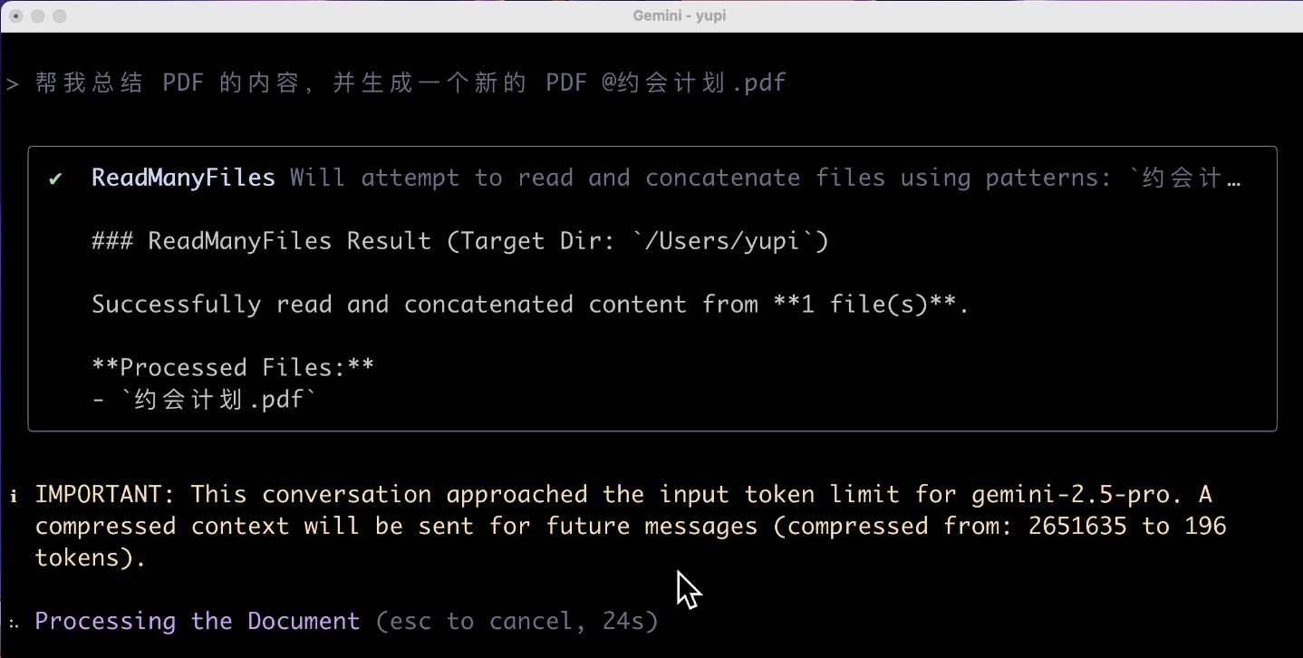 不是号称 100 万 token 上下文么,怎么读个微型 PDF 就超出限制了呢?你无法生成 PDF 我都不觉得奇怪,我这个 PDF 文件就那几个字几张图,为什么?