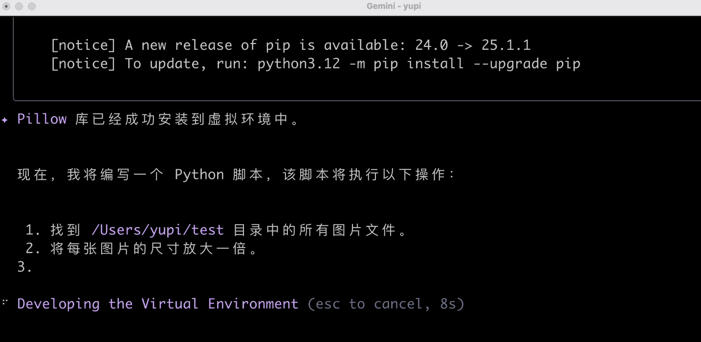 可以看到 AI 安装了图像处理库,然后创建了一个虚拟环境,你别说它对安全性的考虑还是 ok 的: