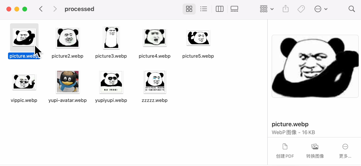 帮我把所有的表情包尺寸放大 1 倍,并且转换为 WEBP 格式,然后将所有表情包组合在一起生成为 GIF