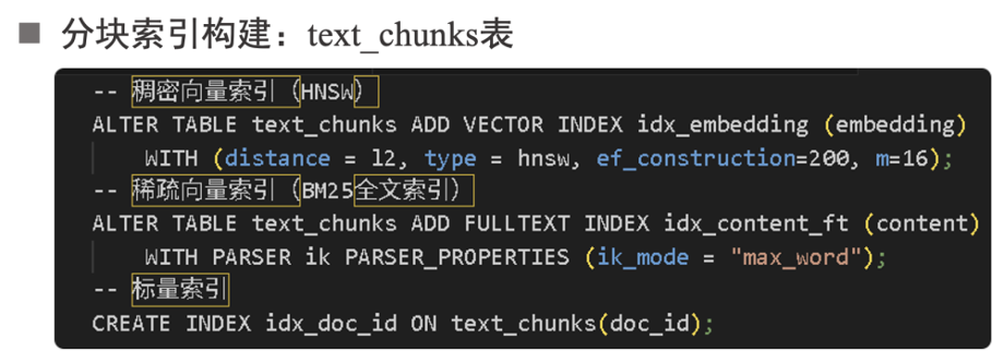 在二维表建立后,需要分别构建文档索引和分块索引。