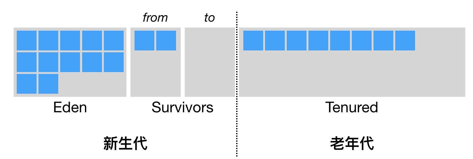 进行垃圾回收 - 在Survivors区长期存活对象转移到老年代