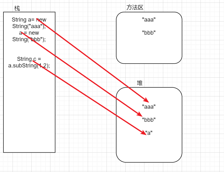 a = "bbb";//这里的可变String类型的引用改变了,但是原有的值没有变化